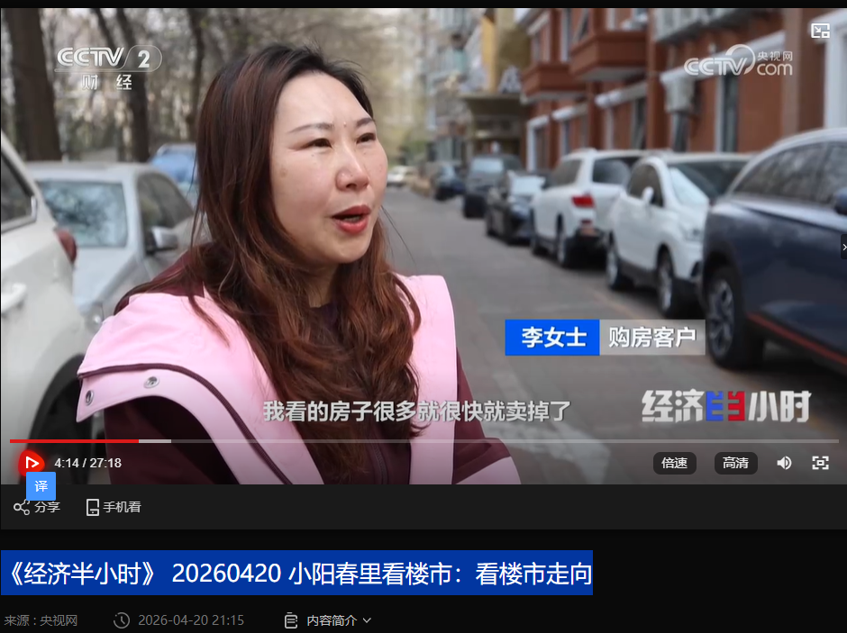 4月20日,央视财经率先以春季楼市行情为切入点,结合一线城市实打实的成交、价格数据,给出了市场已现底部的明确判断,同时拆解了这波小阳春的核心支撑:既有各地持续优化的限购、信贷、公积金等政策托底,也有积压已久的刚需和改善需求集中释放,还有上海试点收购二手房做保租房这类新模式,盘活了存量、打通了置换链条。当然也客观指出,当前回暖高度集中在核心城市和优质房源,市场分化仍在,复苏基础还需要进一步夯实。